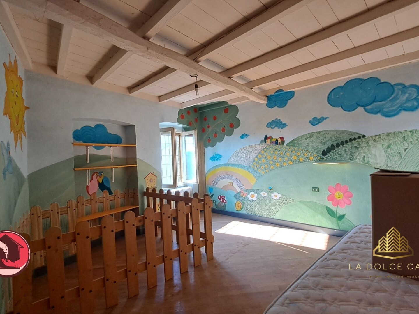 Gli ambienti oggi disponibili raccontano una casa generosa e accogliente: due cucine abitabili, un ampio salone, sei camere da letto, quattro bagni, una splendida terrazza panoramica affacciata sulle colline, due porticati distinti ideali per vivere l’esterno in ogni stagione. Completa la proprietà una porzione di terreno situata sul lato posteriore, separata da una corte comune, perfetta come spazio verde o giardino riservato.