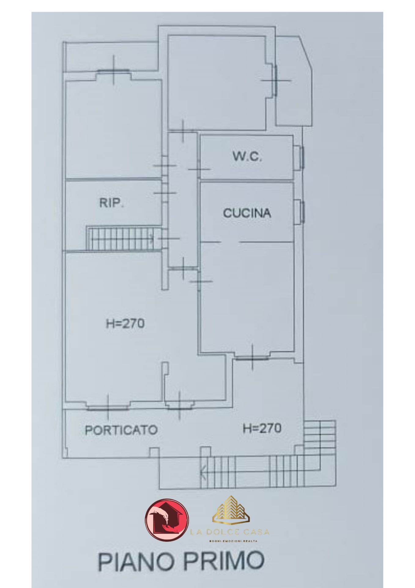 Al piano primo, l’appartamento principale accoglie con un ingresso indipendente tramite scala esterna, che conduce a un porticato coperto, preludio ideale agli spazi interni. Qui si apre un ampio soggiorno, una cucina a vista sulla sala da pranzo, due camere matrimoniali, due bagni, due balconi e un terrazzo, perfetto per godere di momenti all’aperto in totale privacy.